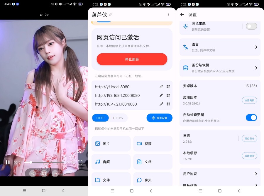 简朴App 是一款开源应用程序,可让你通过网络浏览器管理自己的手机。使用安全、易于操作的 Web 界面,可以从桌面访问文件、视频、音乐、联系人、短信、电话等。